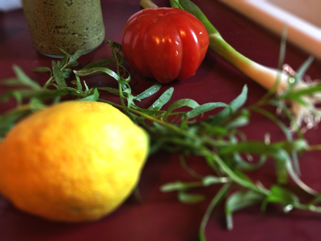 • Vinaigrette mit Olivenöl, Zitronensaft, Estragonsenf, Salz, Pfeffer und Petersilie