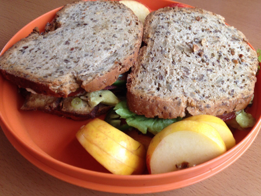 Die veganen Himbeer-Zitrone-„Buttermich“-Cupcakes waren himmlisch, das Rezept gibt es bald hier auf „Oh, wie yummi!“ Und in meiner Lunchbox nicht nur ein Oberyummisandwich mit Shitake-Champignon-Aufstrich, gebratenen Mandel-Nuss-Tofustreifen, Salat, Karotten, Paprika, Frühlingszwiebeln, Avocado und Chili zu finden, sondern auch noch einen Zettel mit guten Reisewünschen, macht das Ganze natürlich perfekt. So lässt sich’s doch aushalten 🙂
