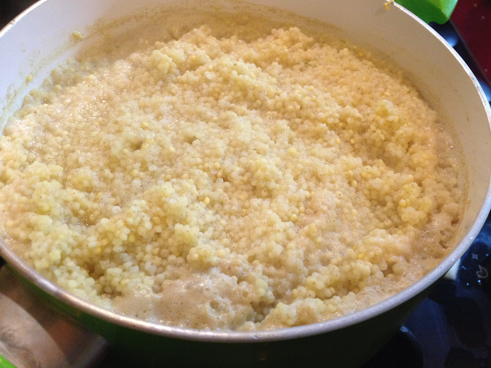 Kohlenhydratmäßig – oder besser gesagt „nicht-kohlenhydratmäßig“ steht Hirse schon mal viel besser da als Pasta und noch dazu soll sie reichlich Magnesium, Eisen und Silizium enthalten, wovon letzteres gut für Haut, Haar und Nägel sein soll. Alla gut, wenn´s schön macht, immer her mit!
