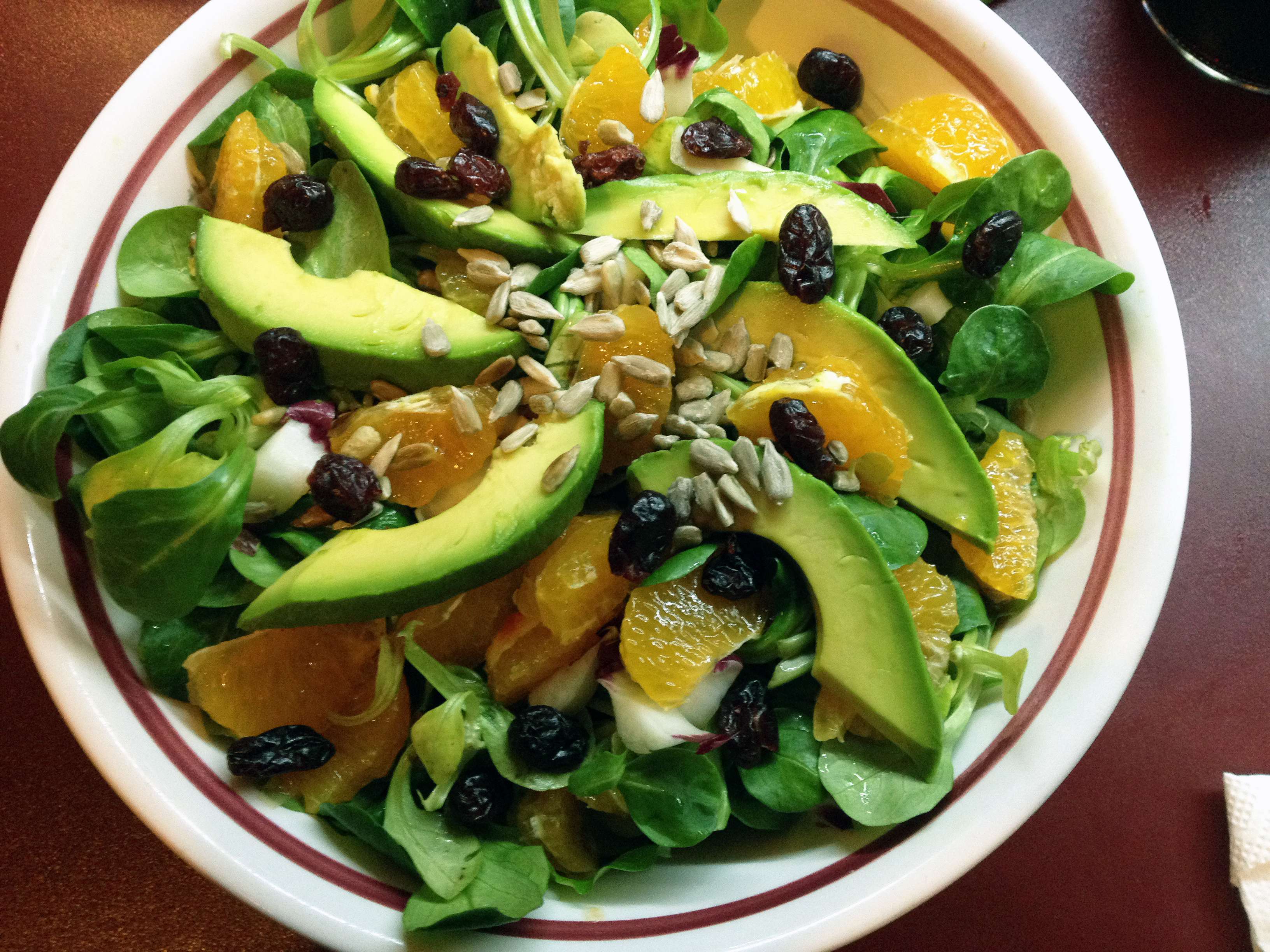 Schlicht, schnell zusammengewürfelt und einfach sehr, sehr yummi: Feldsalat, Radicchio, Orangenfilets, Avocado, Cranberries und Sonnenblumenkerne. Es ist einfach alles vorhanden, was ich an einem guten Salat schätze – das Bittere des Raddichio wird von der Süße der Cranberries und der Säure der Orangen perfekt abgefedert, dazu kommt die dekadente Cremigkeit der Avocado und für die nussige Ergänzung sorgen die Sonnenblumenkerne.