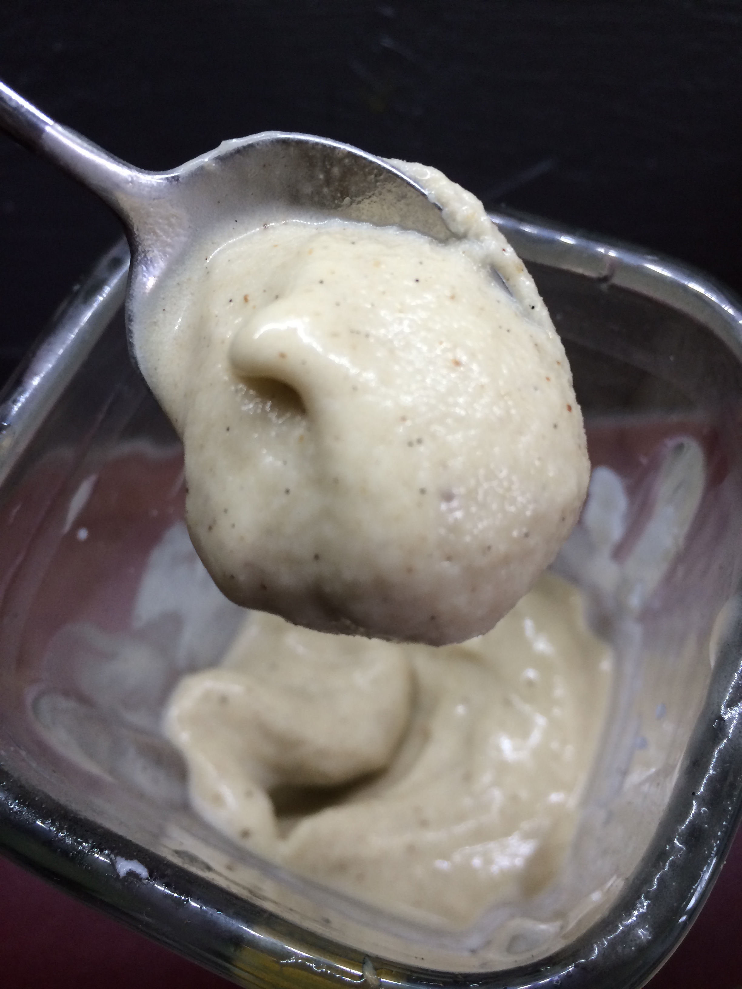 Ich werde demnächst wegen Kaliumüberschusses einen Herzkasper kriegen. Alles mach ich nur noch mit Banane: Im Brot statt Hefe, im Kuchen statt Eiern, nun auch noch als Eis … Dabei bin ich nichtmal vegan, ich finde nur die Möglichkeiten so faszinierend.