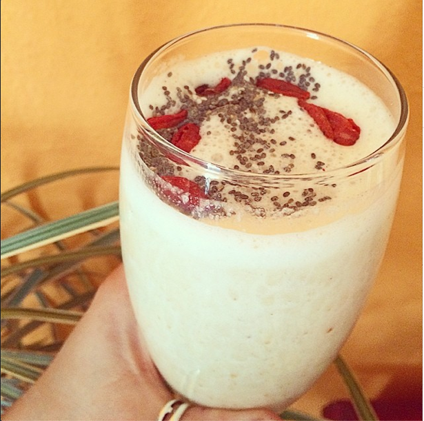 Bildschirmfoto 2014-08-26 um 15.07.26 26. August 2014 von Oh, wie yummi! Hinterlasse einen Kommentar Slush aus Bananen und Datteln mit viel Eis und einem Spritzer Sojamilch, Topping Gojibeeren und Chiasamen
