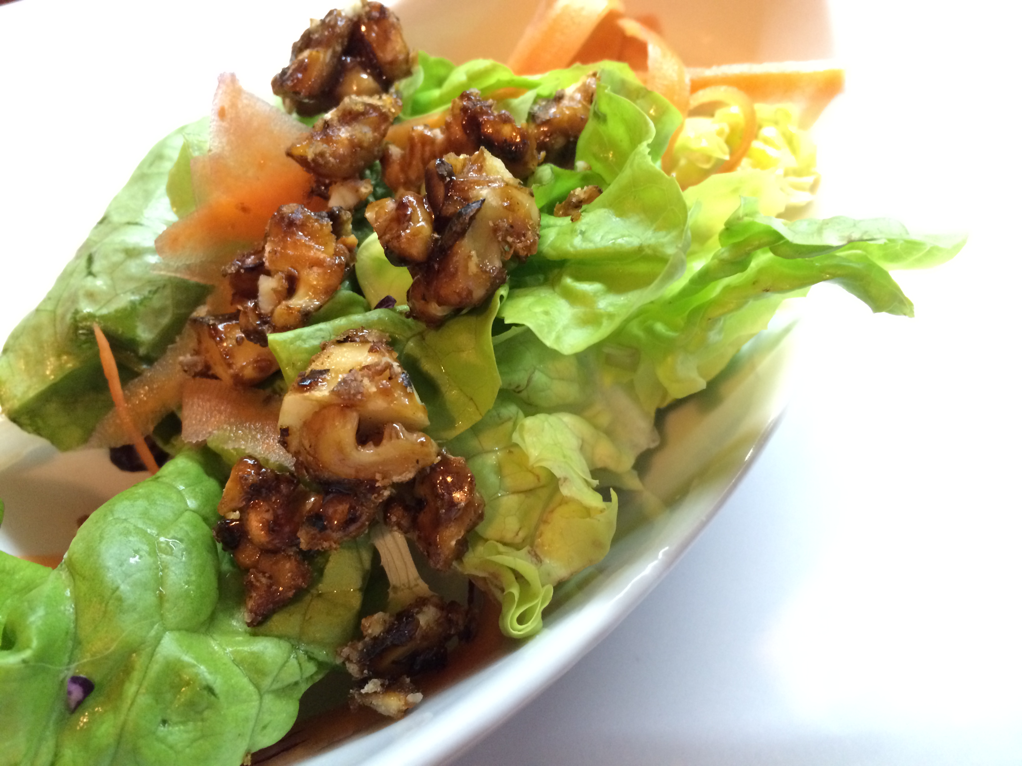 Crunch my salad: Paranüsse und Walnüsse in Ahornkaramell